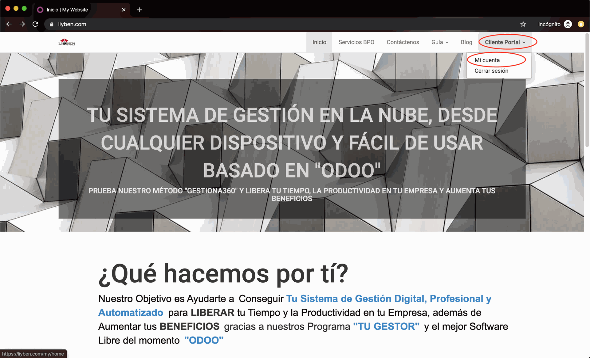 Una vez introducidos los datos de acceso desde la página de login, su cliente podrá acceder al Portal haciendo click en su nombre de usuario y a continuación en Mi Cuenta.