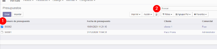 En vista tree de odoo selecciones los registros que quiera exportar.
